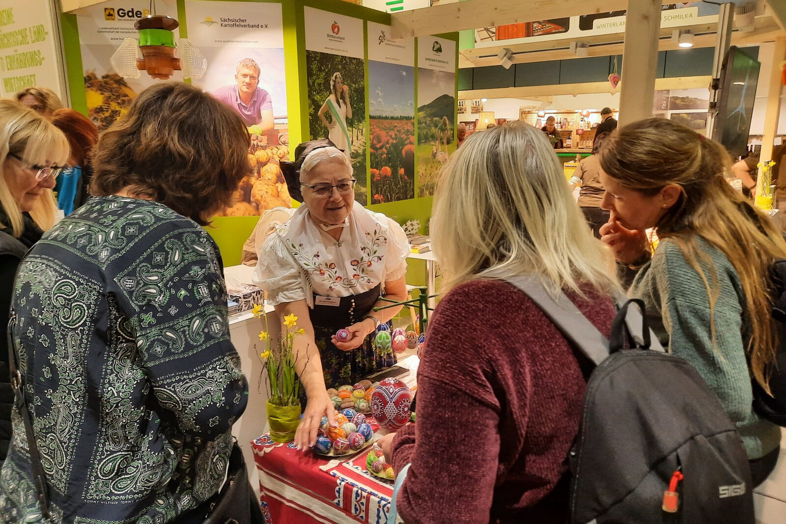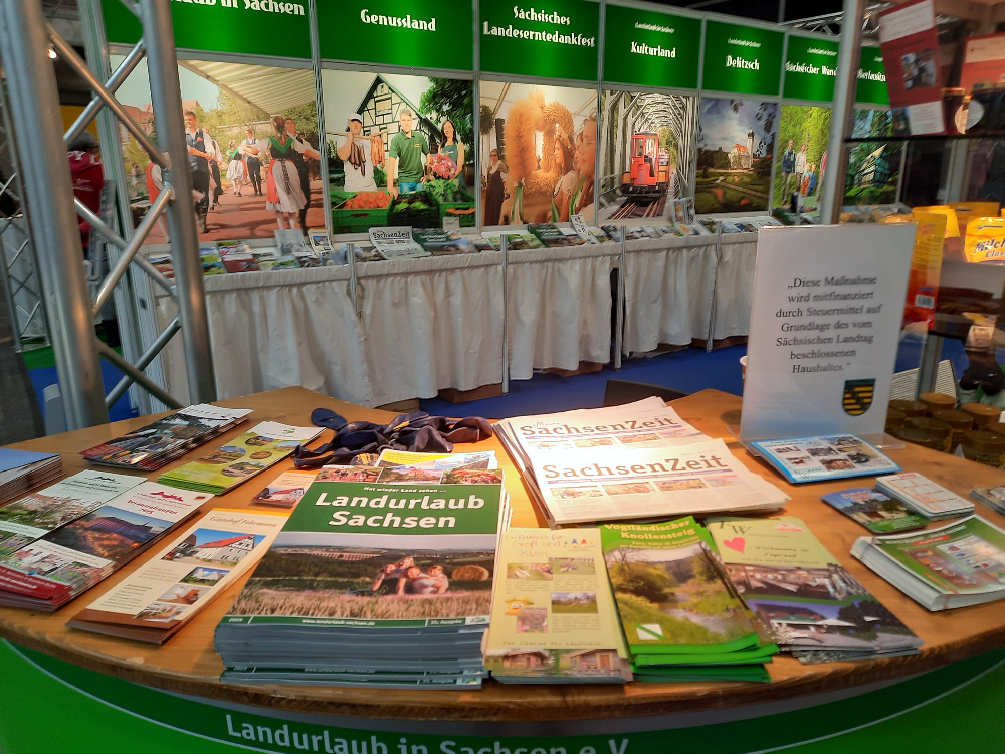 Auch auf der Grünen Woche ist der Verein Landurlaub in Sachsen dabei. Hier präsentiert er sich unter dem Dach des "Freistaats Sachsen" in Halle 21b am Gemeinschaftsstand der sächsischen Verein und Verbände, Stand 227.