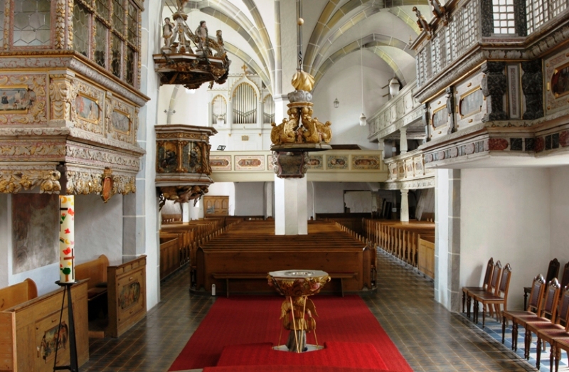 Die Evangelische Kirche St. Johannes ist nach Johannes dem Täufer benannt und wurde im Zuge der Stadtgründung im 12. Jahrhundert als Wehrkirche aufgebaut. Mit ihrer Kirchenmauer bildete sie die „Burg" von Reichenbach, in welche sich die Bevölkerung auch während der Belagerung durch die Hussiten 1430/31 zurückzog.
