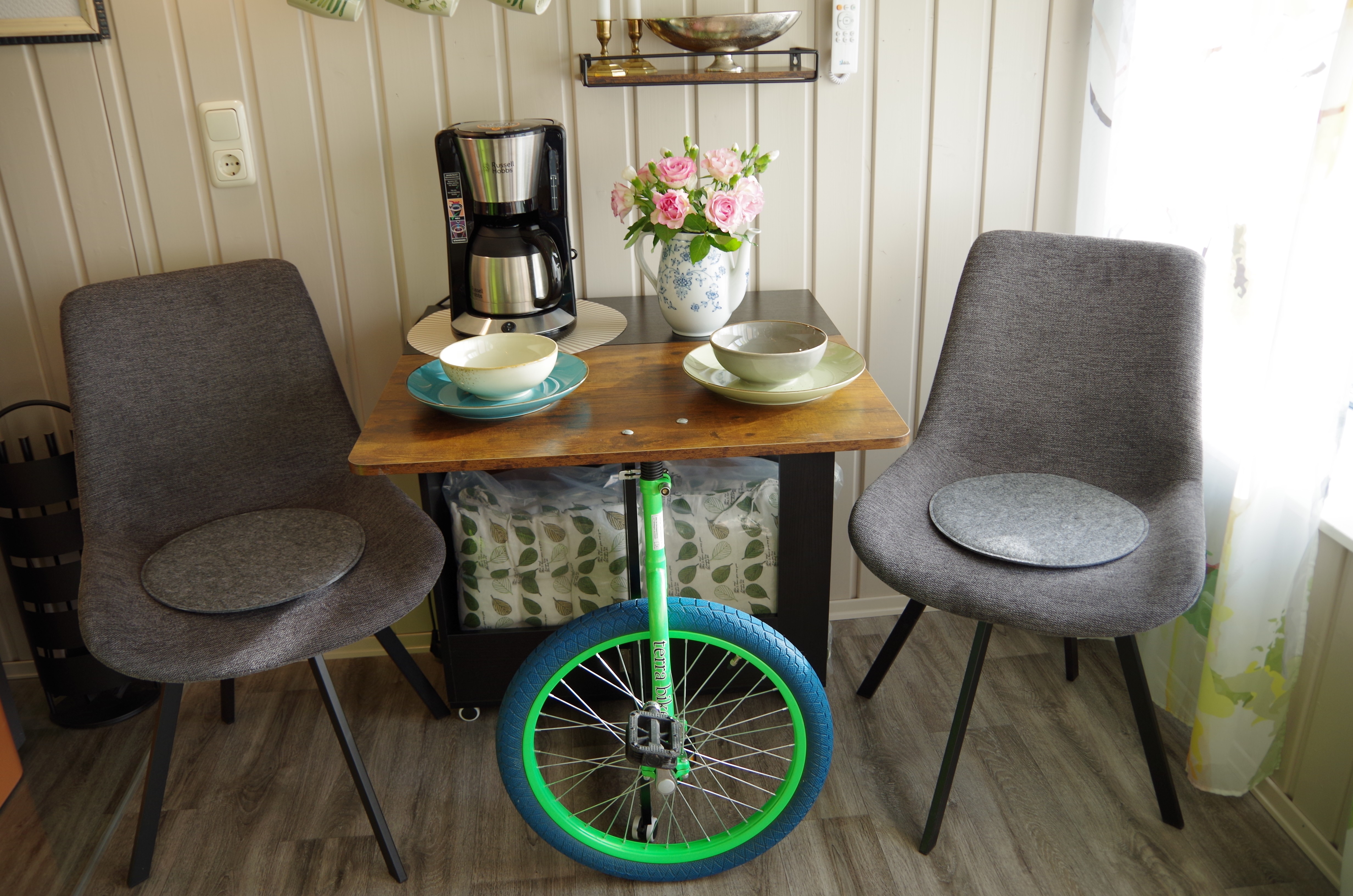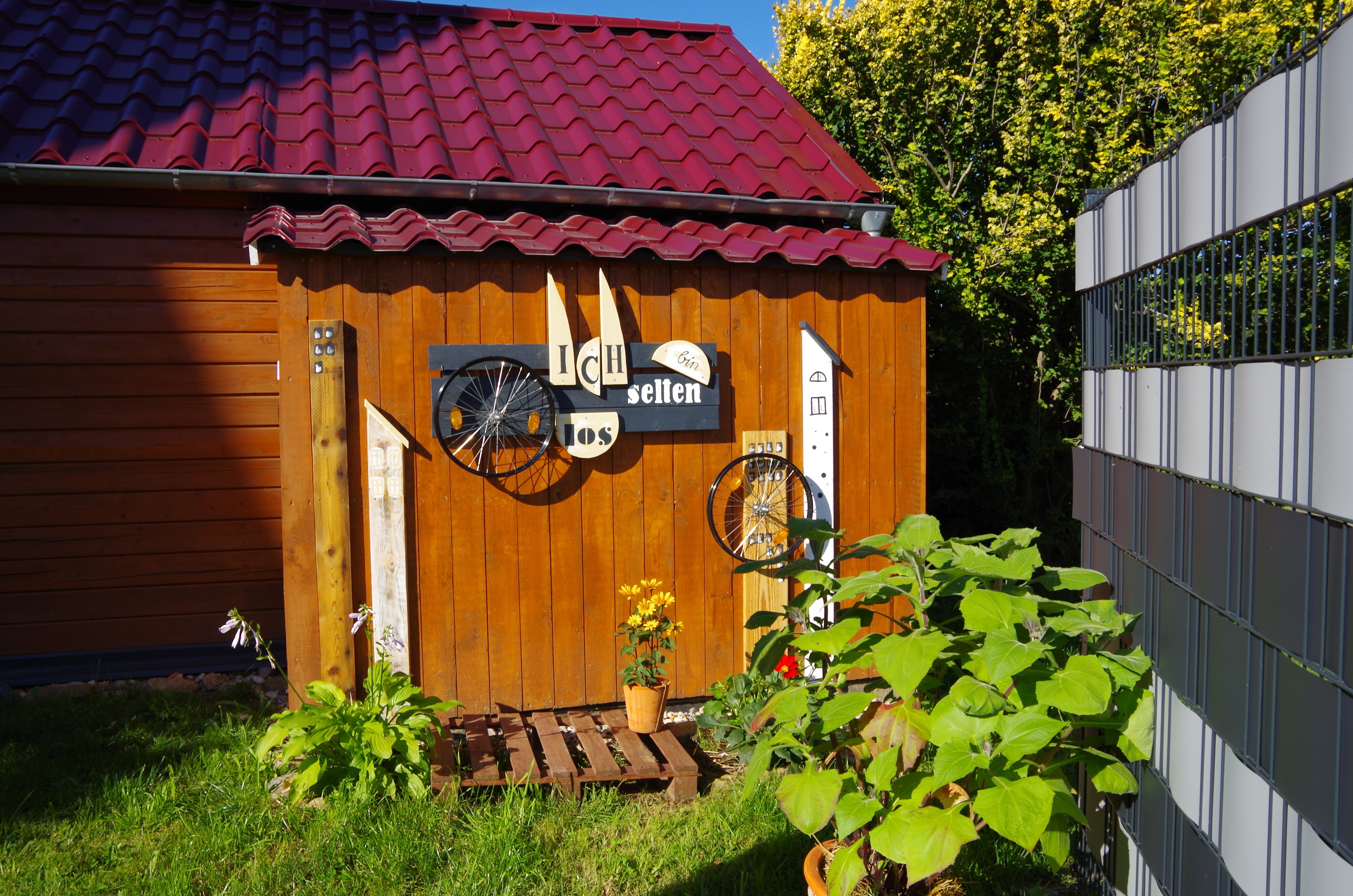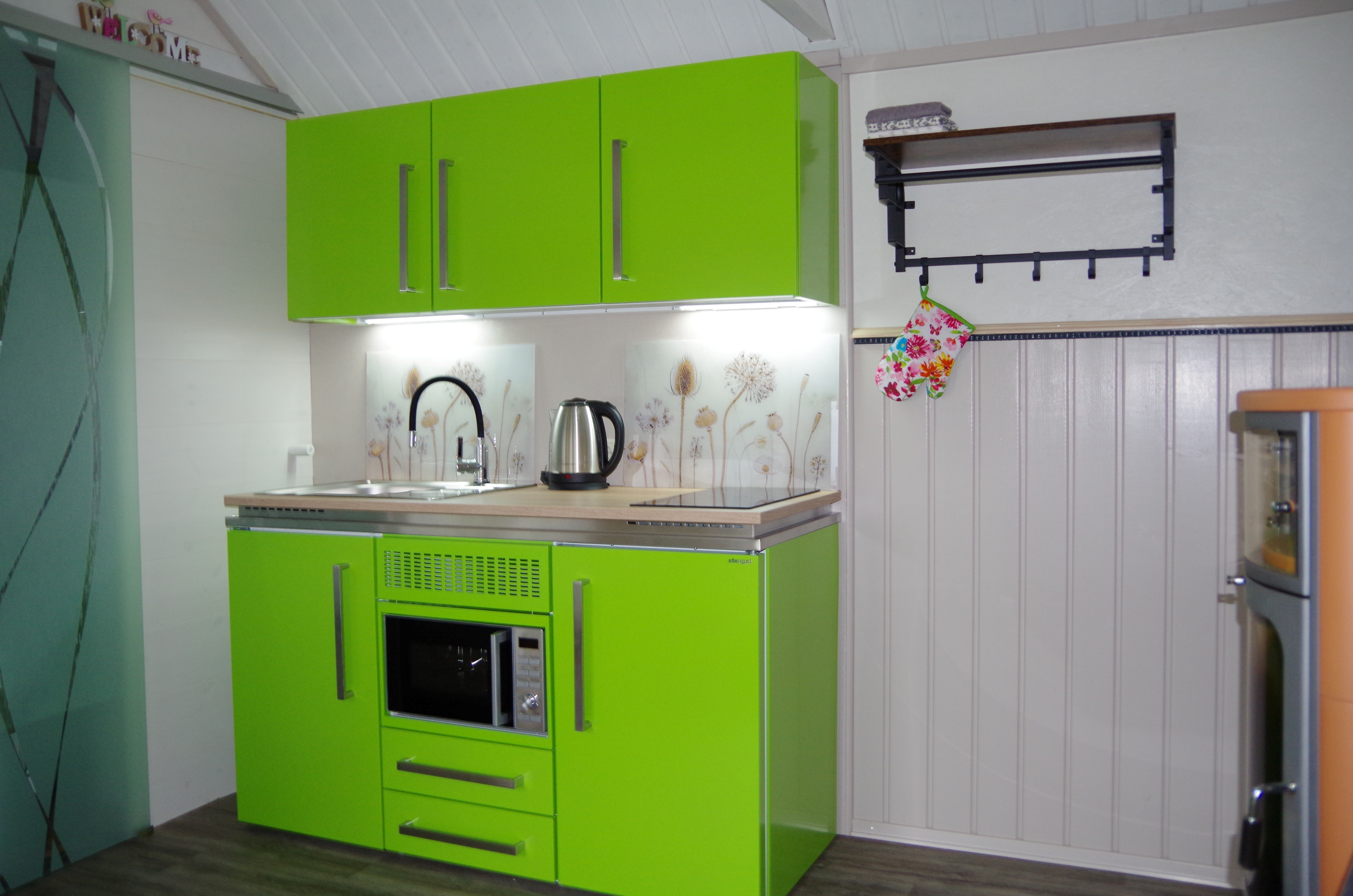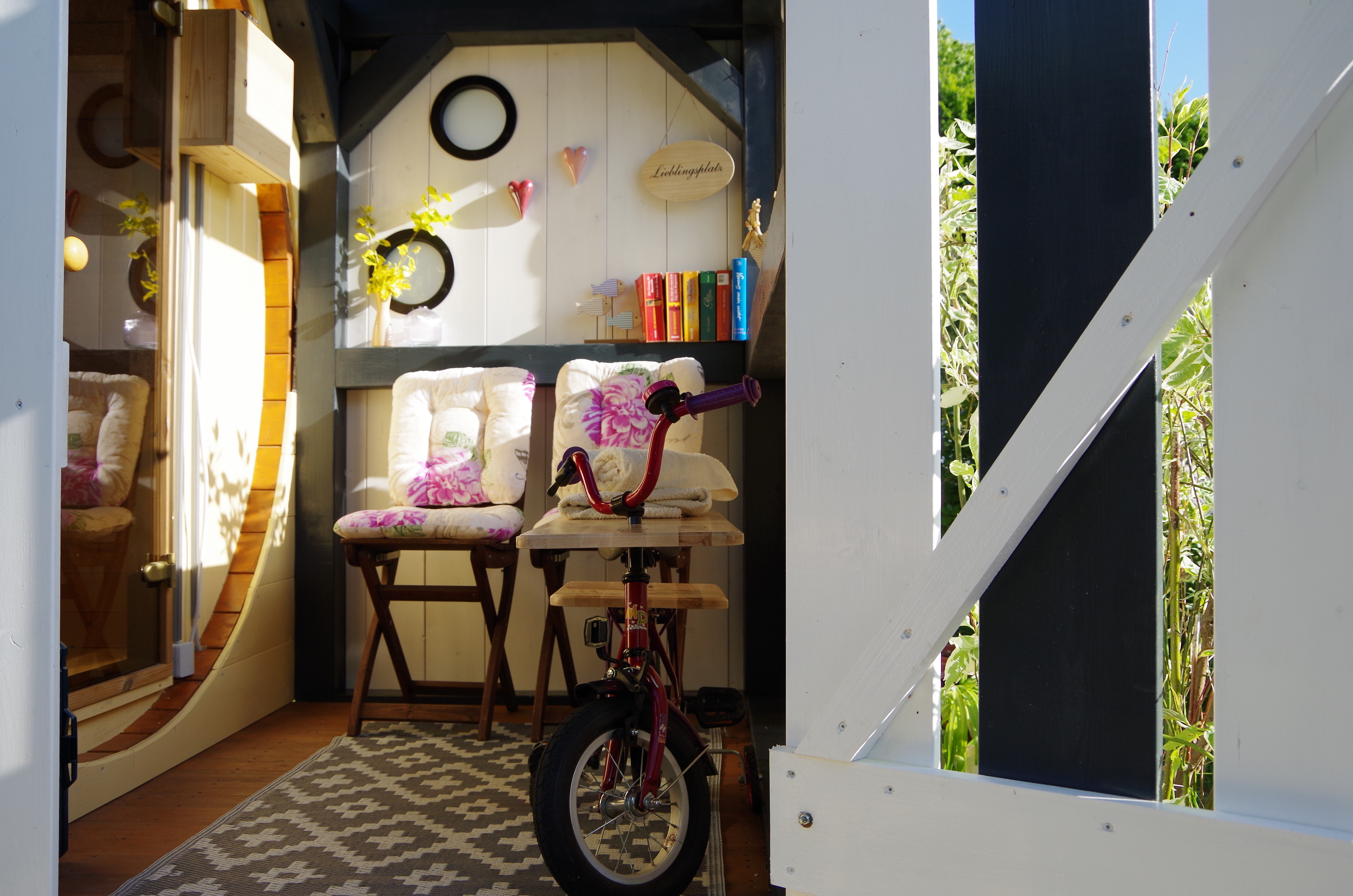 Auf 17qm Wohnfläche bietet es für 2 Personen maximalen Wohnkomfort: ein Doppelbett, gemütliche Essecke, sehr gut ausgestattete Küche, Fernseher, Bad mit WC, Dusche, Waschbecken und Fön, sowie Kamin, Klimaanlage, Sonnenterrasse, Kräutergarten, Fahrradgarage, WLAN und Parkplatz.