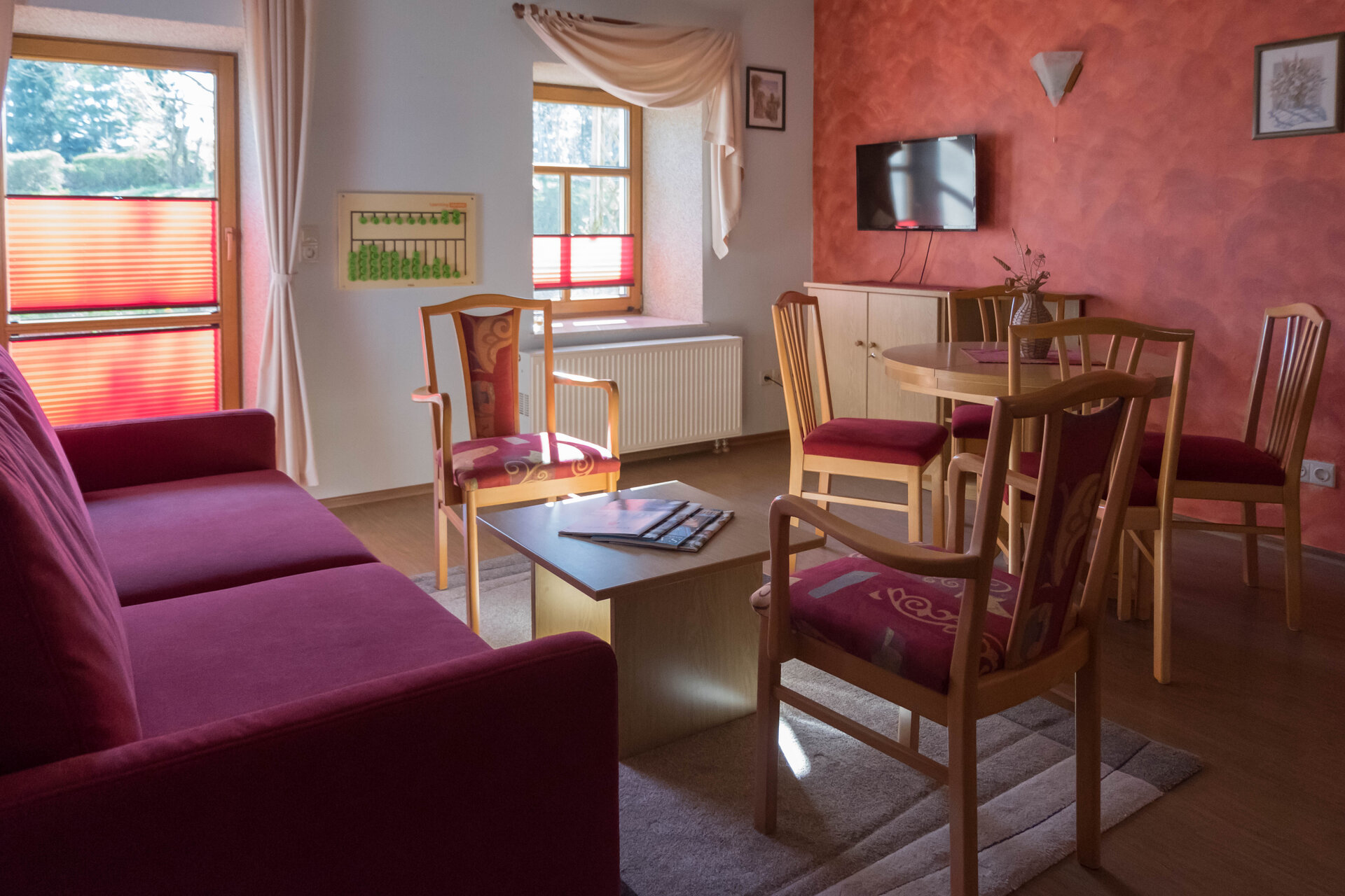 Urlaub bei uns heißt: lange schlafen, auf dem Spielplatz toben, Tischtennis oder Volleyball spielen, Ziegen hüten und Katzen streicheln, um die Talsperre wandern, auf der Terrasse die Sonne genießen und abends am Lagerfeuer sitzen, in der Sauna entspannen oder eine Kutschfahrt machen. Erlebnisbad drinnen und draußen ca. je 5 km.