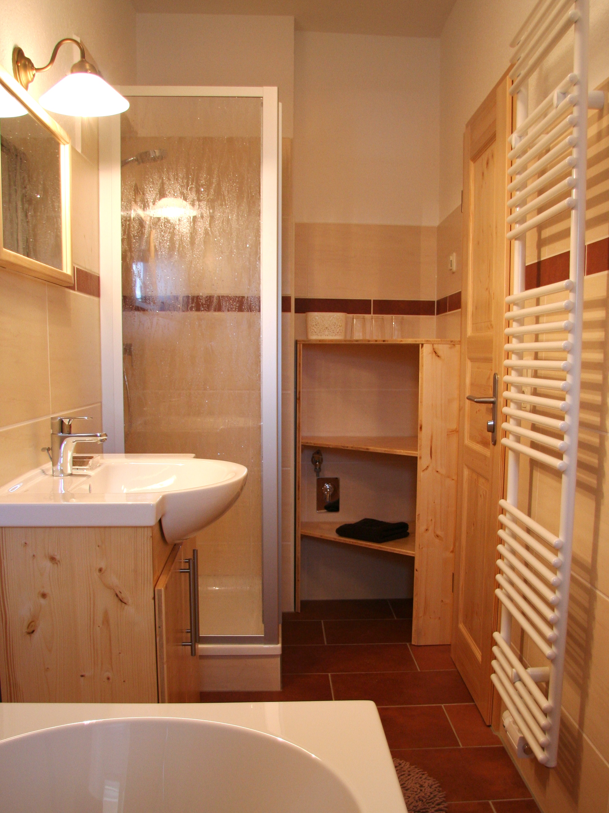 - im Bad erwarten Sie Dusche, WC, Waschbecken und Badewanne