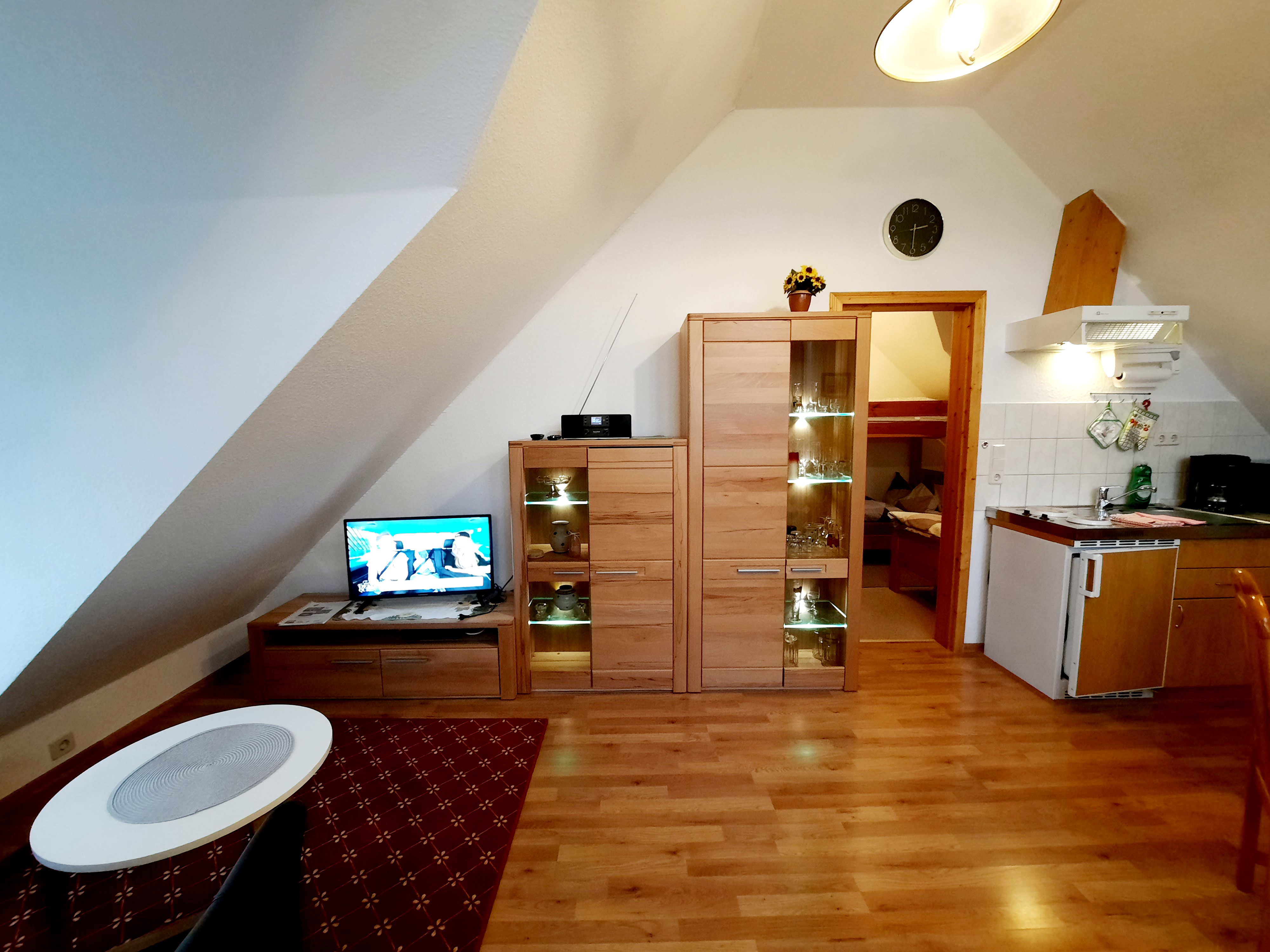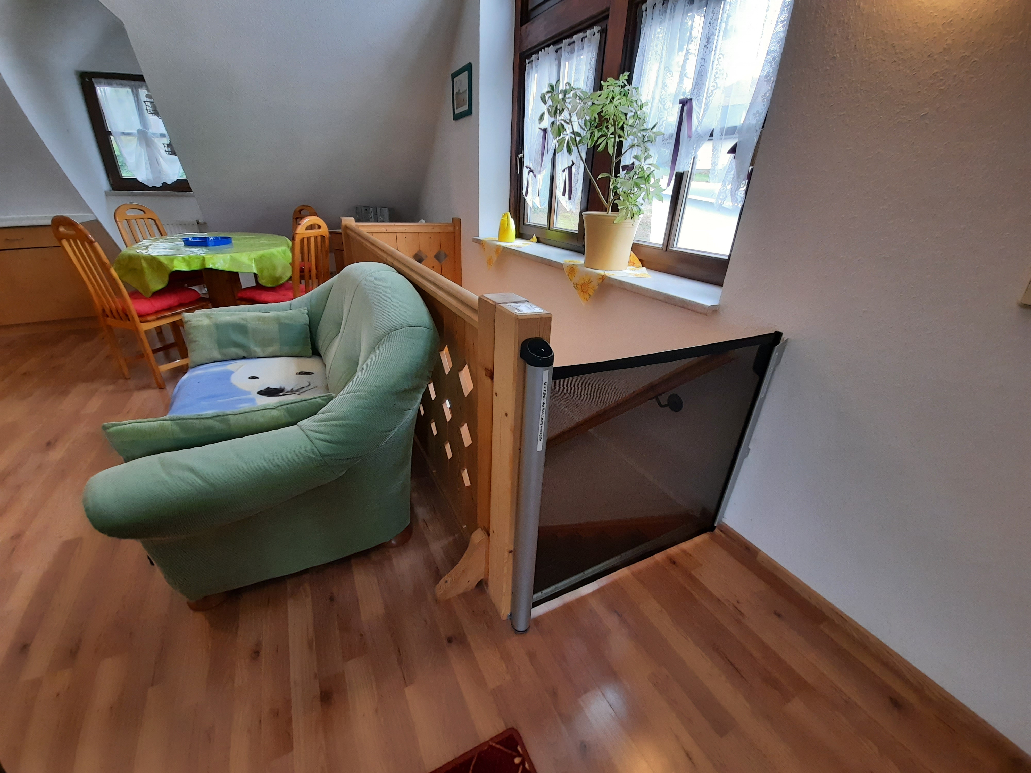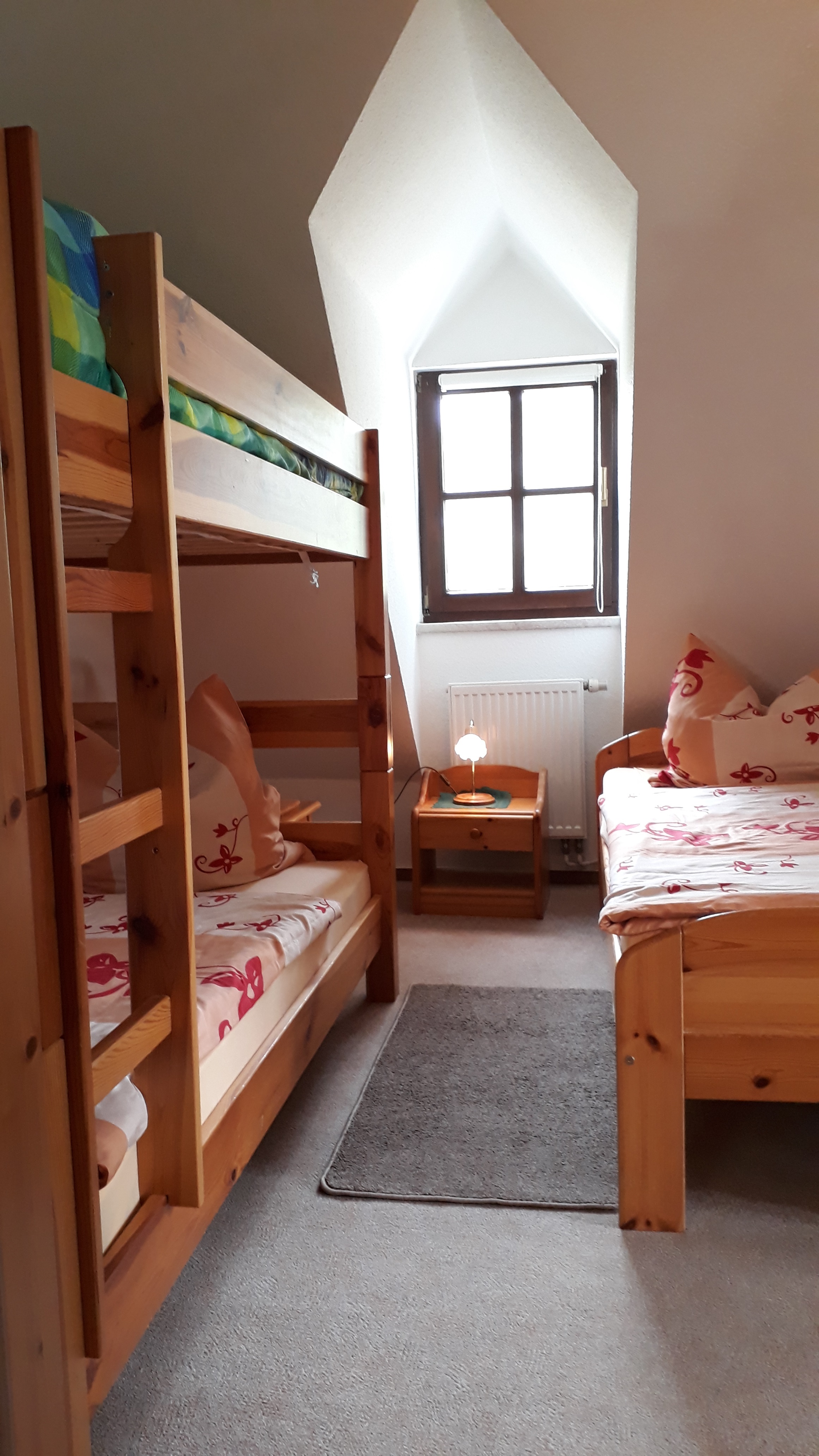 Die 75 m² große Ferienwohnung grenzt an den Dreiseitenhof der Familie Wilfert. Über einen separaten Eingang gelangen Sie in die Wohnung, die sich über zwei Etagen verteilt. Die 1 Etage verfügt über ein Schlafzimmer mit Doppelbett, Dusche und separatem WC. Die zweite Etage beinhaltet Wohnzimmer mit Küchenzeile, ein Schlafzimmer (Etagenbett und Einzelbett) und ein weiteres Schlafzimmer mit einem Einzelbett. Sie können auf der Terrasse grillen. Alle Objekte sind einschließlich Endreinigung, Strom, Wasser, Heizung, Bettwäsche, Handtücher und Geschirrtücher. Das Mitbringen von Hunden ist bei uns leider nicht möglich.