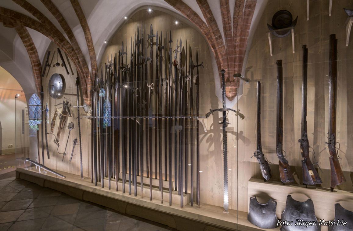 Deren gewachsene Raritätensammlung präsentiert sich in einer barocken Kunst- und Wunderkammer. Mehr als 200 historische Waffen werden in der