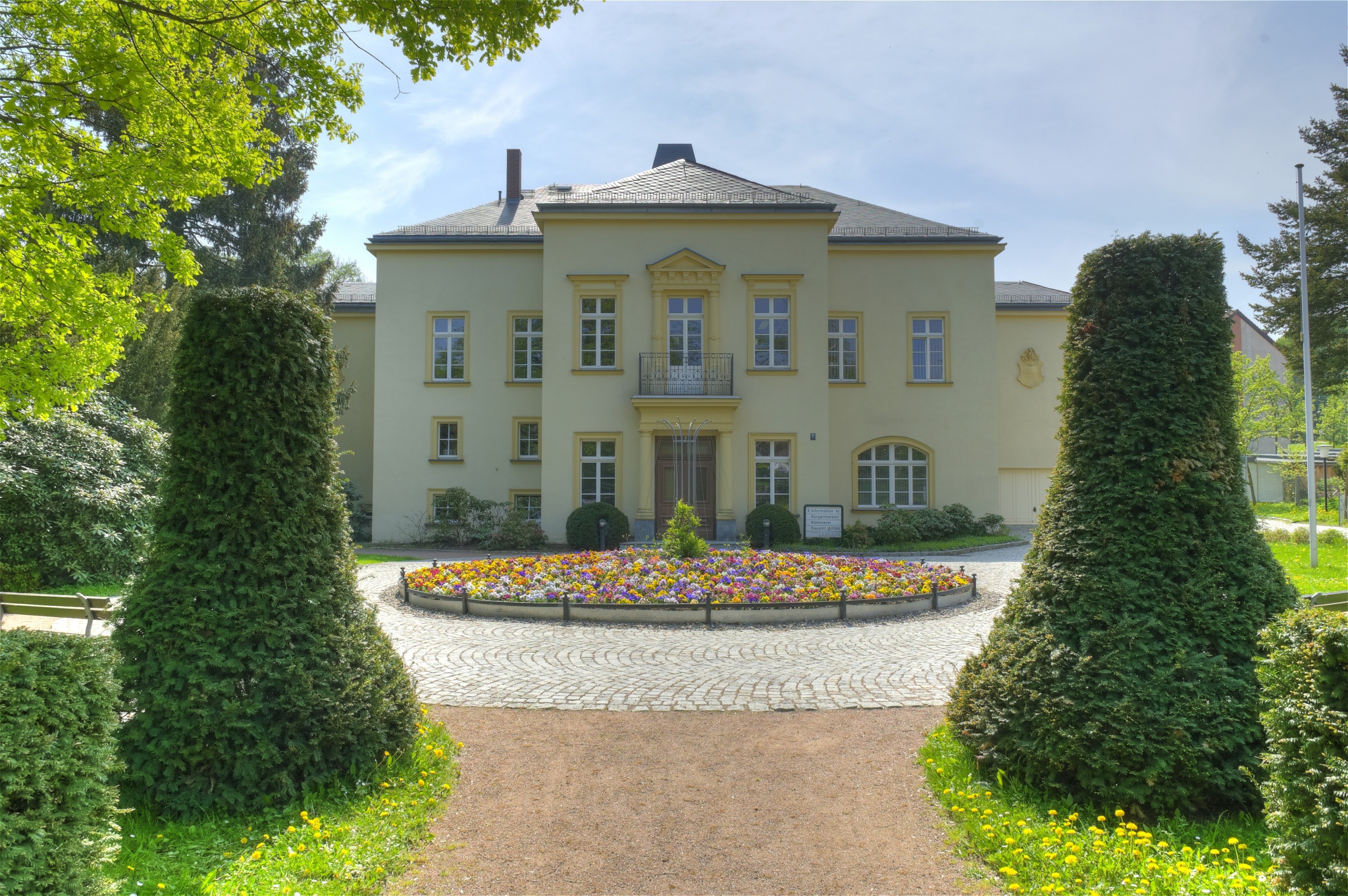 Das heutige Rathaus war einst ein Herrenhaus und steht auf den Grundmauern einer frühdeutschen Wasserburg. Durch sie lässt sich der Ursprung des wahrscheinlich um 1200 entstandenen Rittergutes datieren. Über 200 Jahre lang – von 1456 bis 1692 – saß hier das weit verbreitete sächsische Adelsgeschlecht von Carlowitz. Im heutigen Rathaus sind noch Renaissancegewölbe und malerische Dekors aus dem 16. Jahrhundert erhalten geblieben.