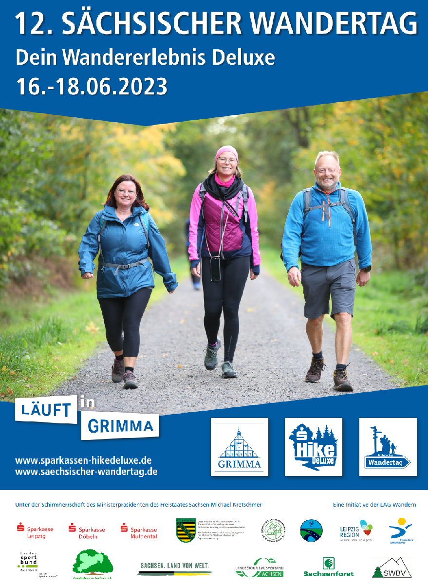 Der 12. Sächsische Wandertag 2023 wird vom Freistaat Sachsen über das Sächsische Regionalministerium unterstützt. Partner der Stadt Grimma sind unter anderem der Sportfreunde Neuseenland e.V., das Sächsische Landeskuratorium Ländlicher Raum e.V. (SLK), das Christlich-Soziale Bildungswerk Sachsen e.V. (CSB), der Landurlaub in Sachsen e.V., die Landesarbeitsgemeinschaft Wandern (Mitglieder sind der Sächsische Wander- und Bergsportverband e.V., der Erzgebirgsverein e.V., der Verband Vogtländischer Gebirgs- und Wandervereine e.V., der Wanderverband Sächsische Schweiz e.V. und der Verein Dübener Heide e.V.), der Staatsbetrieb Sachsenforst, der Landessportbund Sachsen e.V., der Landestourismusverband Sachsen e.V. und die Tourismus Marketing Gesellschaft Sachsen mbH.