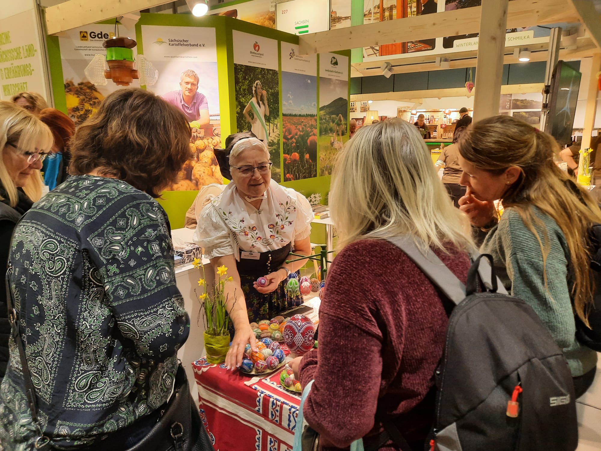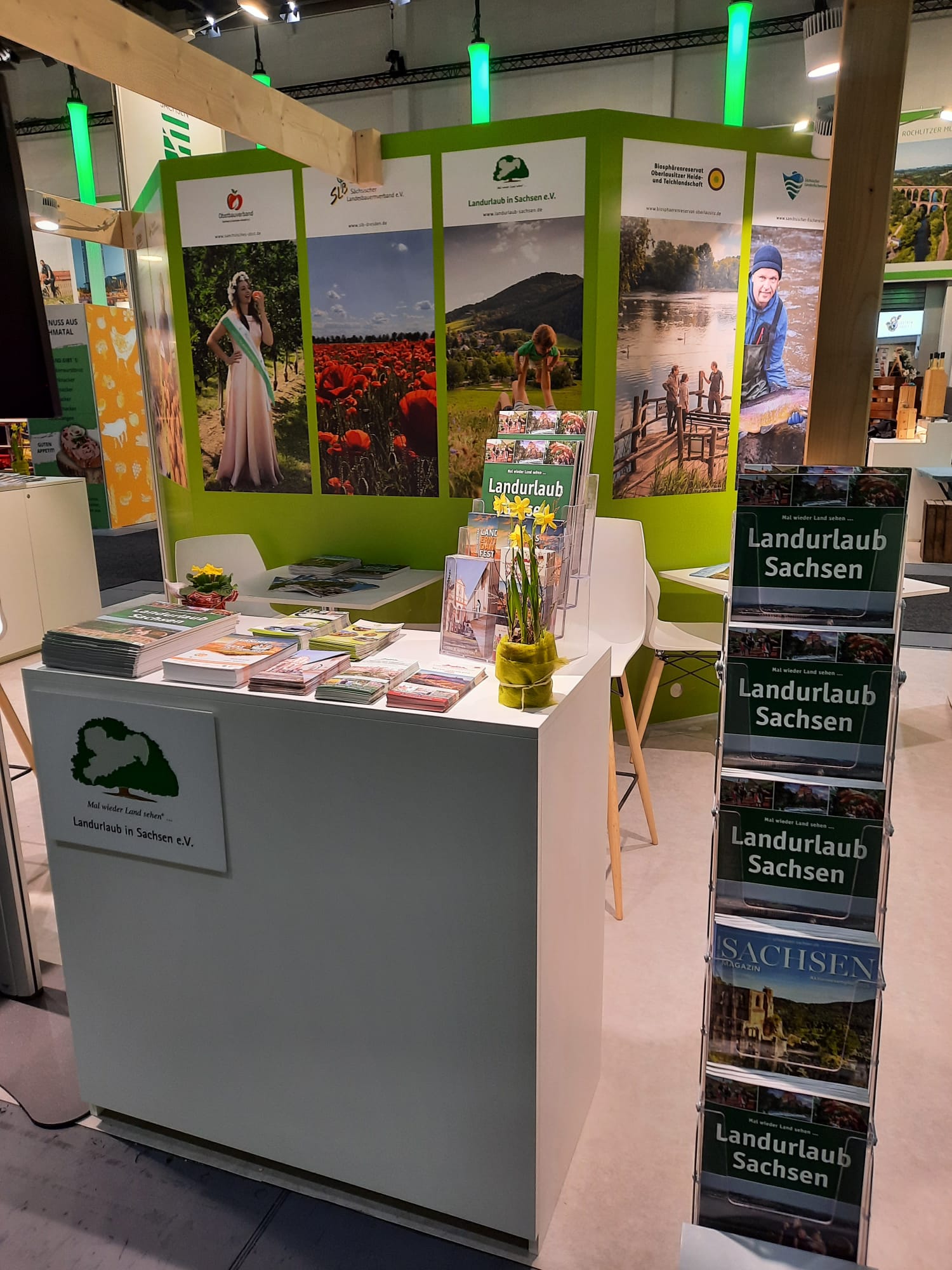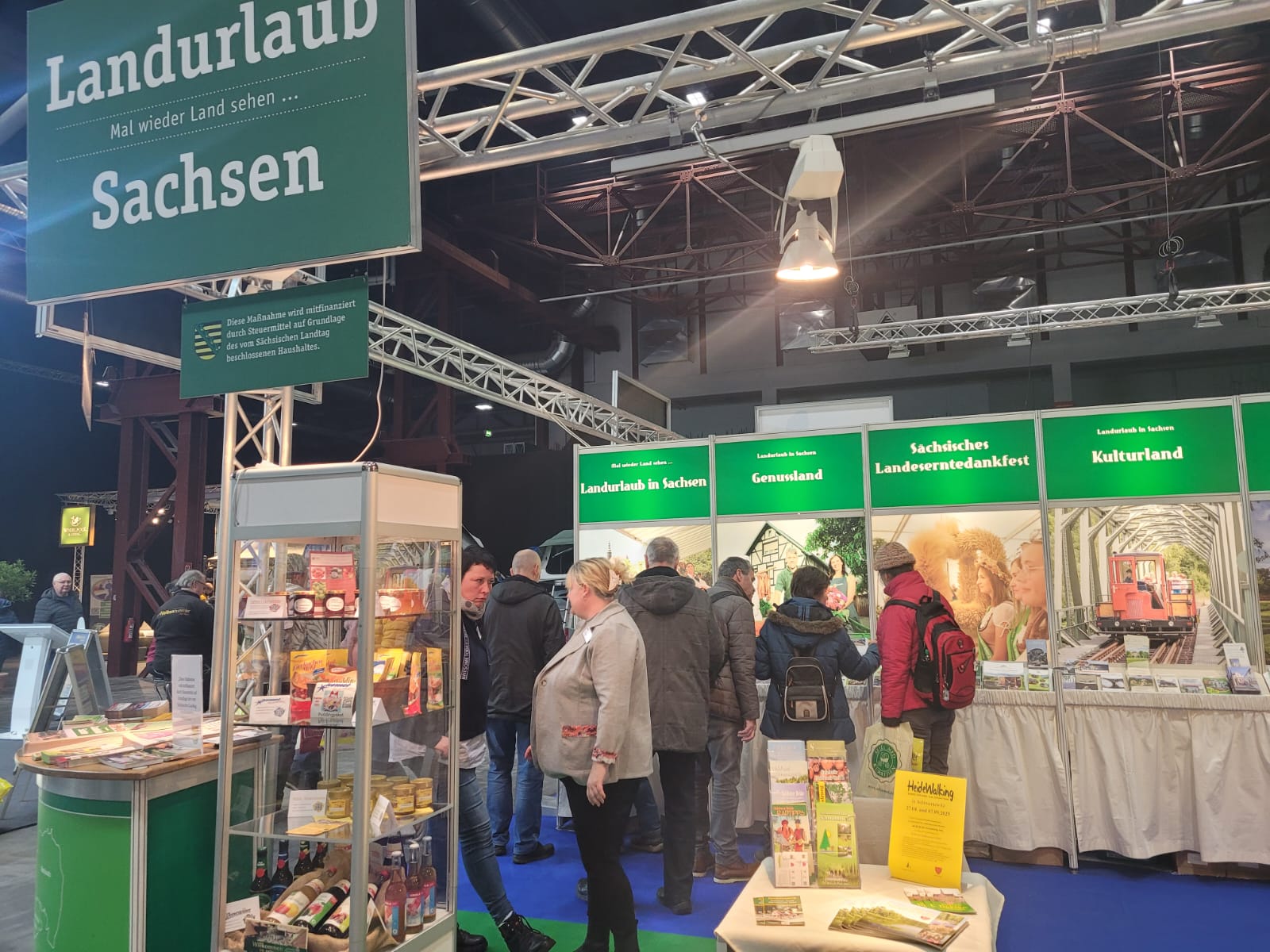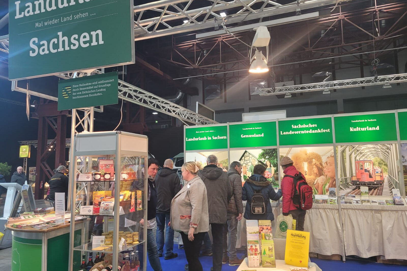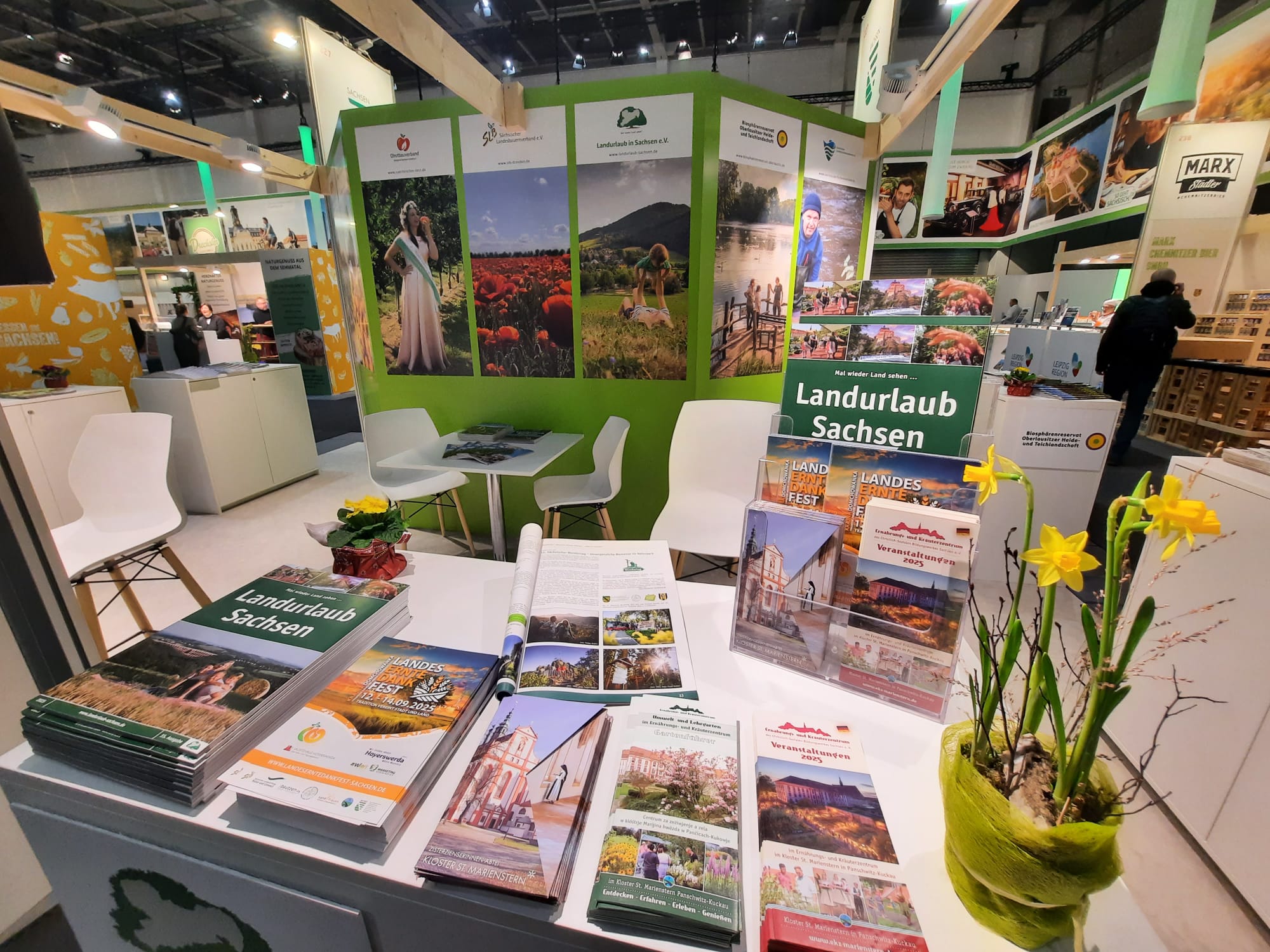 Auch auf der Grünen Woche ist der Verein Landurlaub in Sachsen dabei. Hier präsentiert er sich unter dem Dach des "Freistaats Sachsen" in Halle 21b am Gemeinschaftsstand der sächsischen Verein und Verbände, Stand 227.