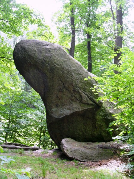 Im Ort führt sie ein Hinweisschild nach rechts zum „Miltitzer Frosch“. Sie folgen dem Hinweis und gelangen an den Miltitzer Frosch, dem weithin bekannten großen Eiszeit-Findling, um den sich die wunderschöne sorbische Sage vom Wassermann rankt. Die Landschaft bietet gerade für jüngere Kinder die perfekte Kulisse für die Empfindung, dass der gute freundliche Wassermann tatsächlich gleich um die Ecke schaut. Im anschließenden Wald entdeckt man „landart“ Objekte verschiedener europäischer Künstler, ein kurzer schmaler Weg schlängelt sich durch das Wäldchen um wieder auf eine ehemalige asphaltierte Wendeschleife zu gelangen.