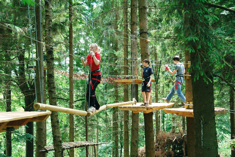 Sie wollen sich sportlich bewegen und Ihre Ängste überwinden? Dann sind Sie im Kletterwald Schöneck an der Hohen Reuth genau richtig. In bis zu 15m Höhe sind Bäume mit Seilen und Brücken verbunden. Ein echter Nervenkitzel für Groß und Klein. Eine ideale Abkühlung danach mit zahlreichen Möglichkeiten für Wasserratten bietet das Erlebnisbad Aqua World in Schöneck. Weitere Informationen finden Sie unter www.kletterwald.de und unter www.ifa-ferienpark-vogtland.de