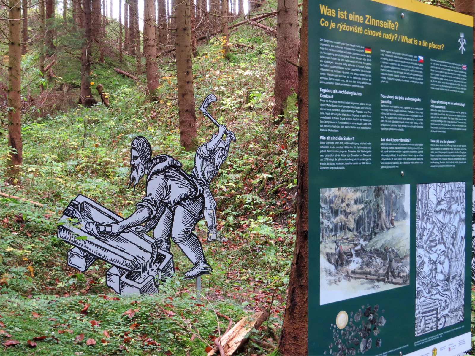 Auf dem Bergbaulehrpfad am Gerstenberg zwischen Eibenstock und Wolfsgrün wird die Bergbaugeschichte lebendig. Im Wald finden sich zahlreiche Spuren und Zeugnisse des Zinnbergbaus, der hier an der Oberfläche in sogenannten „Pingen“ betrieben wurde. Das Erz wurde vor Ort durch ein Hammerwerk zerkleinert, das Zinn ausgewaschen und mit Hilfe von Holzkohle eingeschmolzen, bevor es weiterverkauft wurde. Auf dem mittlerweile auf rund 3 Kilometer erweiterten Rundweg können die Besucher die mühsame Arbeit, die verwendeten Werkzeuge, Materialien und Vorrichtungen kennenlernen und sich auf eine Zeitreise ins 16. Jahrhundert begeben. An verschiedenen Stellen können große und kleine Kinder auch selbst das Auswaschen ausprobieren und auf Holzleitern wie die Bergleute klettern. Der Rundweg ist nicht für Kinderwagen geeignet, festes Schuhwerk ist vor allem bei nasser Witterung empfohlen.