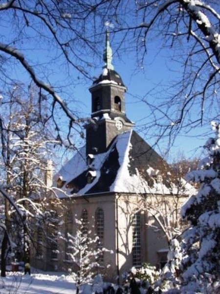 Die Kirche ist unser denkmalgeschütztes klassizistisches Gotteshaus, das nach einer Bauzeit von 2 Jahren am 22. September 1822 eingeweiht wurde. Einen Tag später übergab der Orgelbaumeister Christian Gottlob Steinmüller die erste Orgel, die 1912 durch die jetzige Schmeisser-Orgel ersetzt wurde. Seit 2007 haben wir wieder ein wohlklingendes Bronzegeläut, in Lauchhammer gegossen. Die alten Stahlklang-Glocken stehen hinter der Kirche im Ruhestand. Die kleine Glocke kann mit Hand geläutet werden.