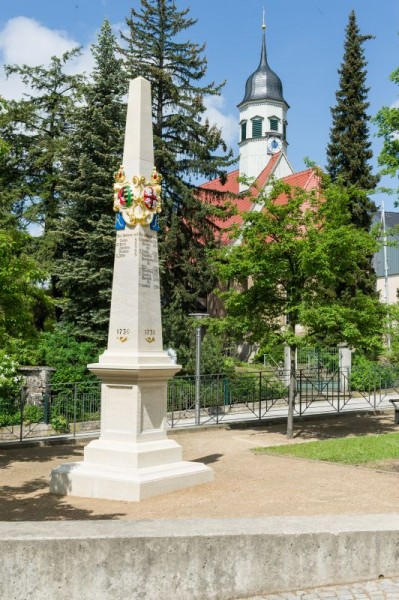 Gleich neben der Rabenauer Kirche sehen Sie ein liebevoll restaurierte Postmeilensäule.